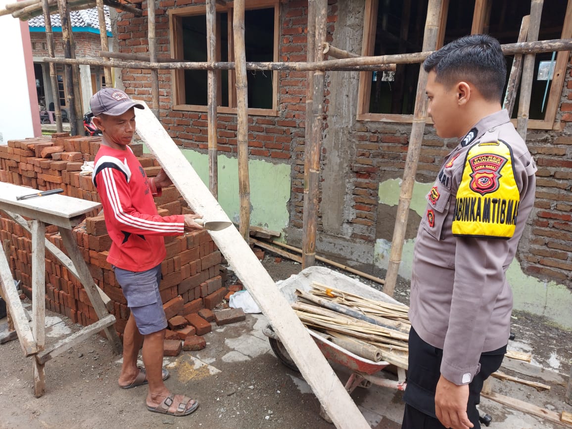 Bhabinkamtibmas Polsek Sukahaji Komsos dengan Pekerja Bangunan di Desa Palabuan