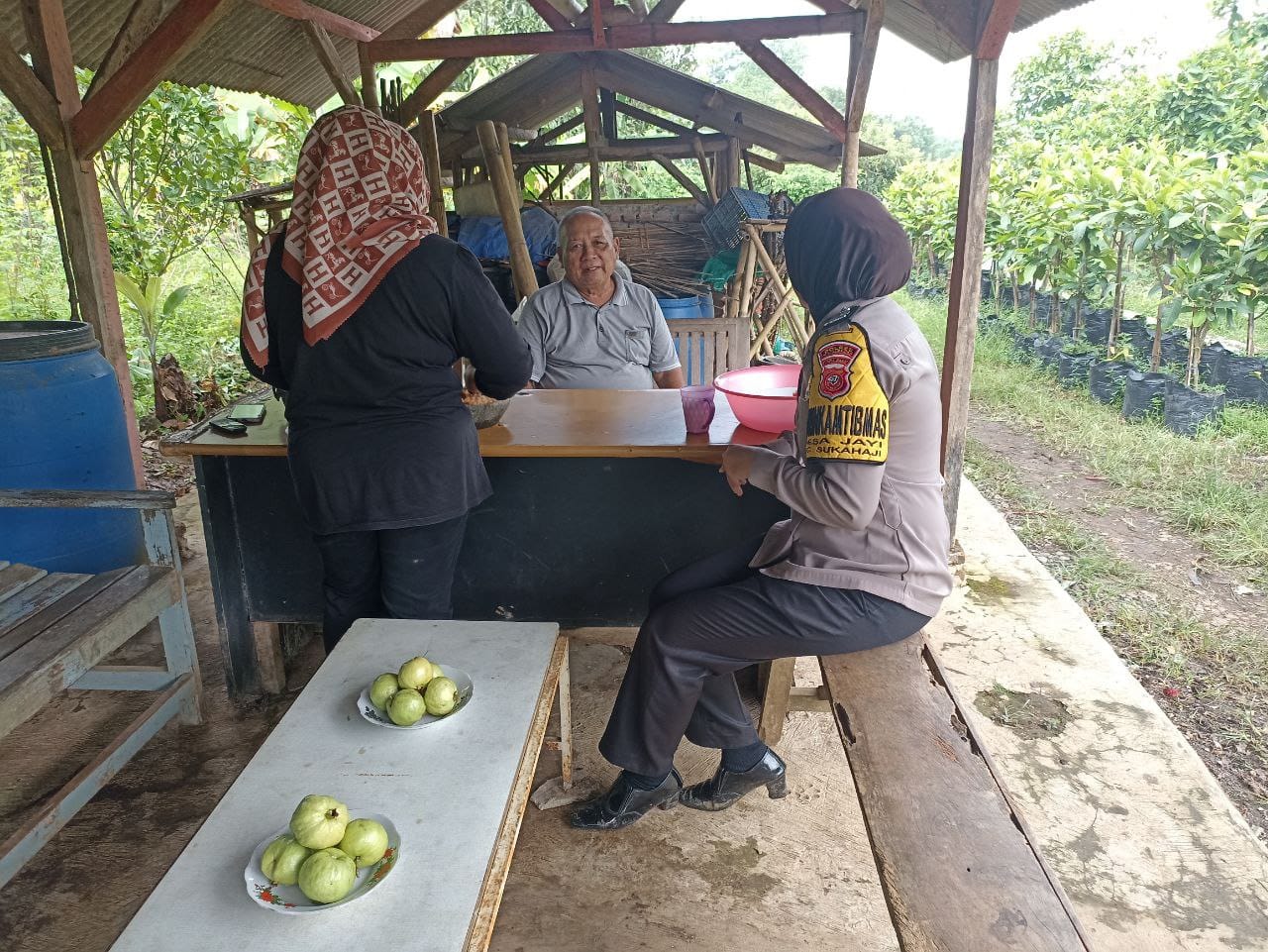 Majalengka,- Bhabinkamtibmas Polsek Sukahaji, Polres Majalengka, Polda Jabar, Brigadir Nia, melaksanakan kegiatan blusukan dengan menyambangi pengusaha jambu kristal yang berada di wilayah Desa Jayi, Kecamatan Sukahaji, Kabupaten Majalengka. Kunjungan ini bertujuan untuk menjalin silaturahmi dan memberikan imbauan kamtibmas kepada para pengusaha setempat. Pada Rabu (24/07/2024).