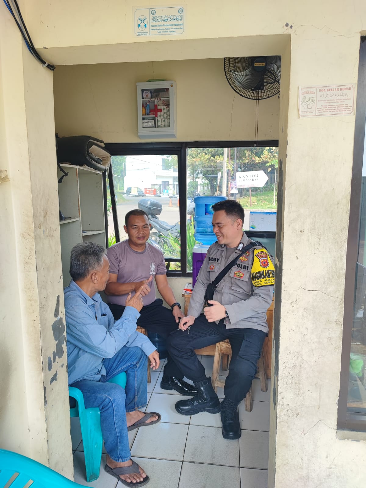 Dalam kegiatan sambang tersebut, Bripka Akbar Boby A, SH Bhabinkamtibmas Ds Sukaraja. Polsek Sukaraja Polres Bogor melaksanakan dialog dengan Satpam Sdr. Ujang sekaligus menyampaikan pesan kamtibmas guna meningkatkan kewaspadaan terhadap para pelaku tindak kejahatan, maupun kenakalan remaja. satpam pun di himbau untuk dapat menginformasikan kepada pihak kepolisan bila mana mengetahui adanya gangguan kamtibmas ataupun hal-hal yang mencurigakan melalui nomor call center Polres Bogor 110.