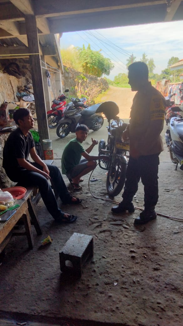 Seperti yang dilakukannya Personil Bhabinkamtibmas Desa Cibanon Aiptu Dani Kartika Yang melaksanakan sambang kepada warga di lokasi bengkel sepeda motor yang yang terletak di wilayah Desa Cibanon Kecamatan Sukaraja Kabupaten Bogor.