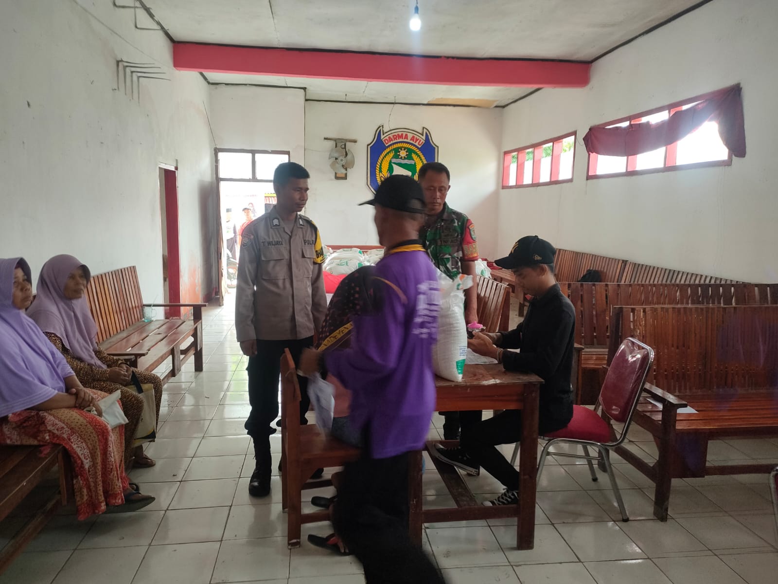 Indramayu – Bhabinkamtibmas Polsek Terisi jajaran Polres Indramayu Polda Jabar bersama Babinsa setempat melakukan monitoring kegiatan pembagian bantuan sosial berupa beras dari Kementrian Pertanian melalui Dinas Ketahanan Pangan.