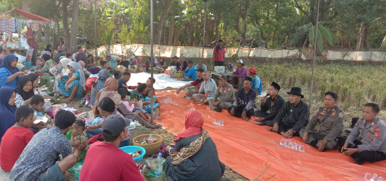 Indramayu,- Bhabinkamtibmas Desa Karangkerta Polsek Tukdana jajaran Polres Indramayu Polda Jabar, Bripka Taskani, ikut serta dalam kegiatan doa bersama yang diselenggarakan dalam rangka Adat Desa Sedekah Bumi di di area persawahan Desa Karangkerta Rt. 03 Rw. 01, Kecamatan Tukdana, Kabupaten Indramayu. Rabu (8/11/2023)