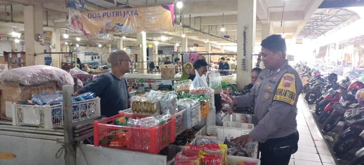POLRES CIREBON KOTA,- Bripka Pendy, Anggota Bhabinkamtibmas Kejaksan Polsek Utbar menyambangi pedagang di Pasar Pagi yang masuk kedalam wilayah binaan Kelurahan Kejaksan Cirebon Kota.