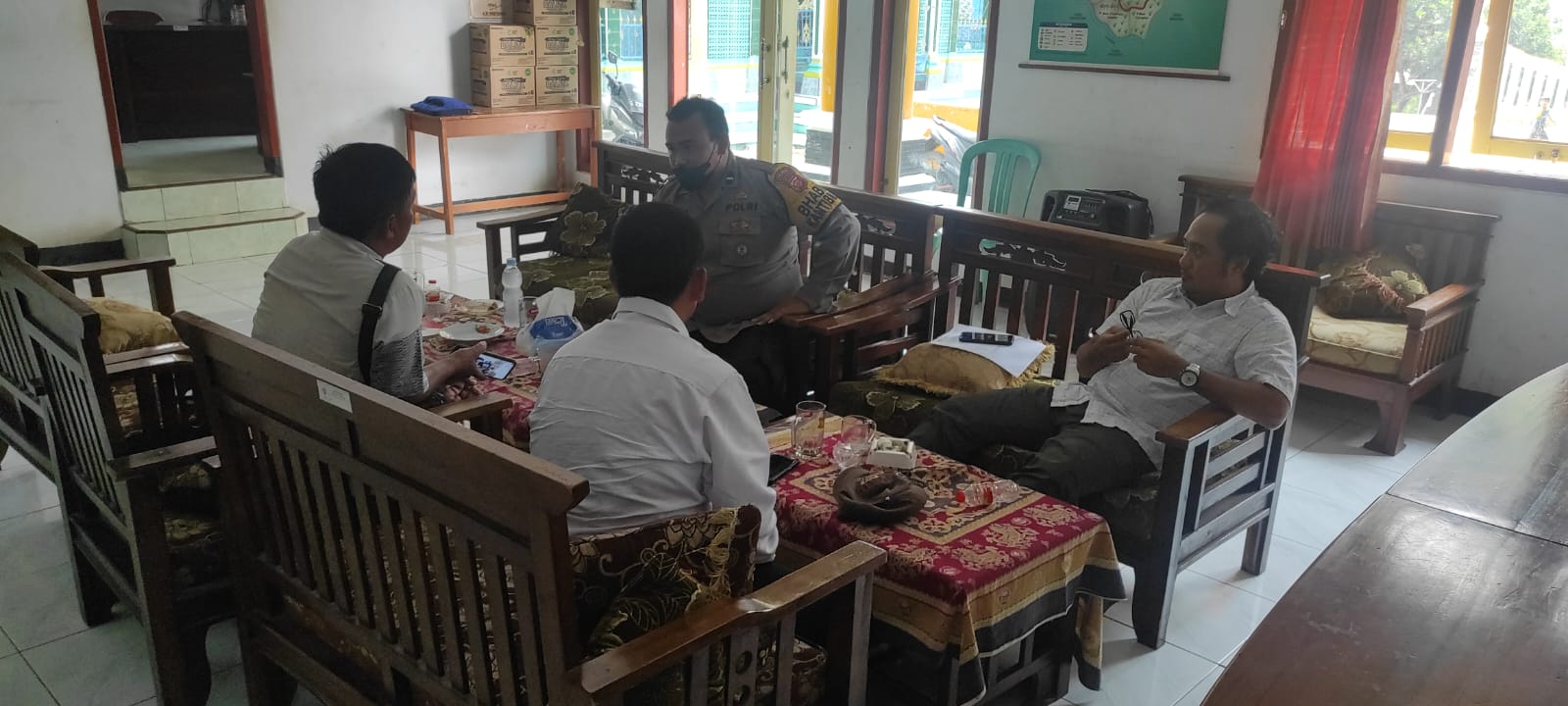 Dalam pertemuan yang berlangsung hangat, Aipda Muhammad Tajul berdialog dengan perangkat Desa Bayureja mengenai langkah-langkah pencegahan dan pengamanan menjelang Pemilu 2024. Ia menekankan pentingnya peran aktif masyarakat dan perangkat desa dalam menciptakan lingkungan yang aman dan kondusif.