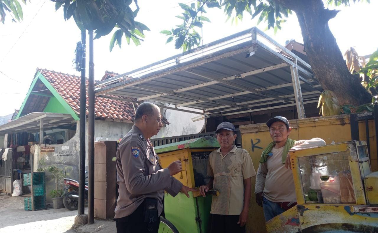 POLRES CIREBON KOTA,– Dalam rangka memantau situasi kamtibmas di wilayah binaan, Bhabinkamtibmas Kelurahan Jagasatru Polsek Seltim Polres Cirebon Kota Aiptu Ujang Supriyadi sambangi pedagang Jajanan Keliling di Kampung Karang Anyar Timur Rw. 08 Kel.Jagasatru Cirebon Kota, Jumat (23/06/2023).