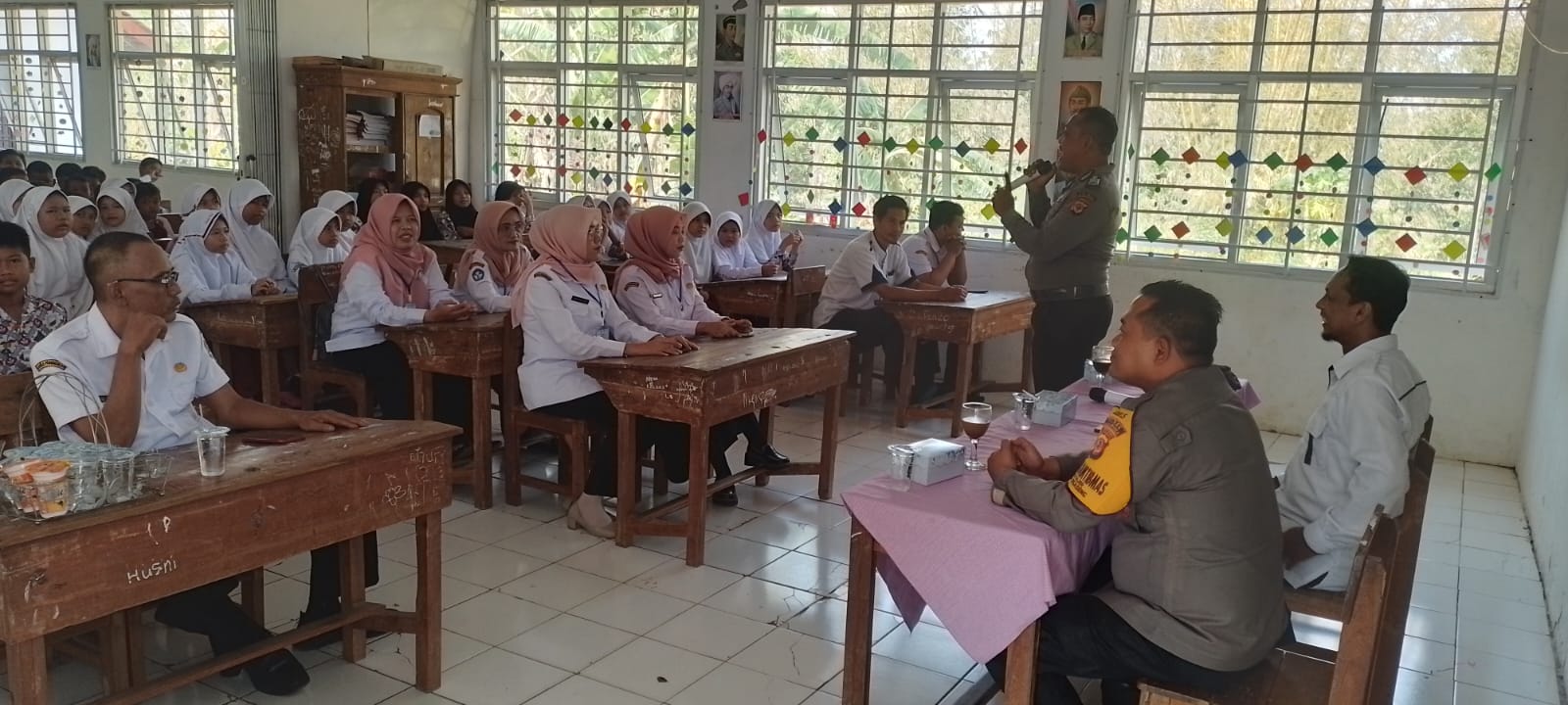 Selain itu, Bripka Yusup Aditya dan Bripka Erik Supriyatna juga memberikan informasi tentang cara menghadapi situasi darurat dan apa yang harus dilakukan dalam kasus-kasus kecil seperti kecelakaan atau tindakan kriminal yang mungkin terjadi di sekitar sekolah.