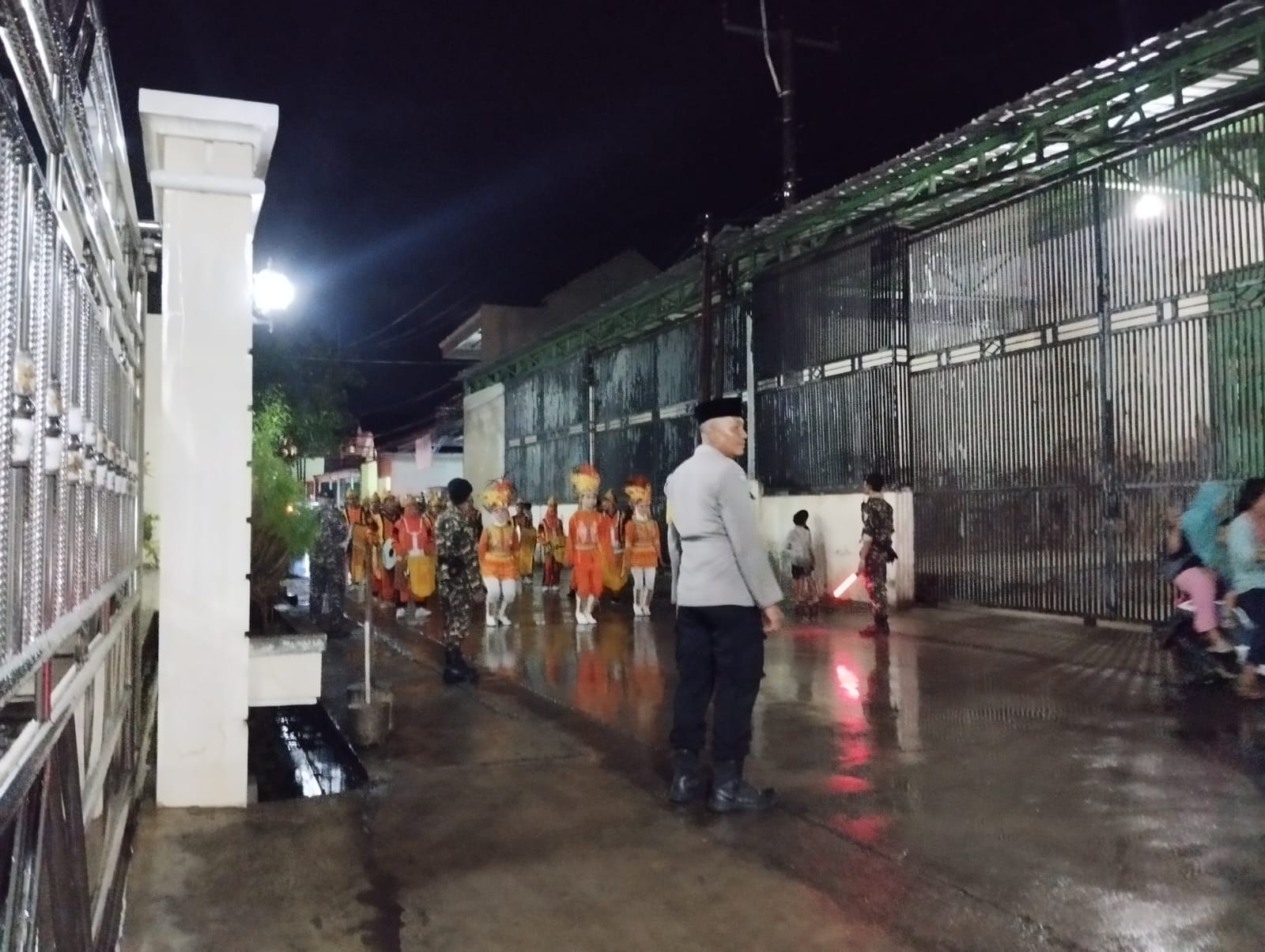 POLRES CIREBON KOTA,-Dalam rangka memelihara kondusifitas wilayah binaanya, dan jalin komunikasi dengan warga masyarakat. Bhabinkamtibmas Desa Tuk Polsek Kedawung Polres Cirebon Kota Aiptu Toto berikan rasa aman lakukan pengamanan dan pengawalan pawai ta’aruf desa Tuk kecamatan Kedawung Cirebon kota dalam rangka memperingati Tahun baru Islam 1446 H,. Minggu malam (07/07/2024) .