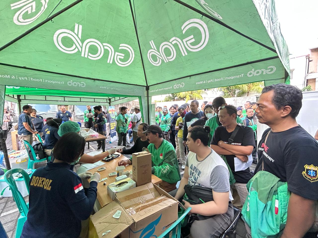 Jumat, 13 Juni 2025Dalam rangka memperingati Hari Bhayangkara ke-79, Bidang Kedokteran dan Kesehatan (Biddokkes) Polda Bali bersama Tim medis RS Bhayangkara Denpasar kembali melaksanakan bakti kesehatan berupa pemeriksaan kesehatan gratis dan pemberian sembako bagi para pengemudi ojek online di Kantor Grab Denpasar.