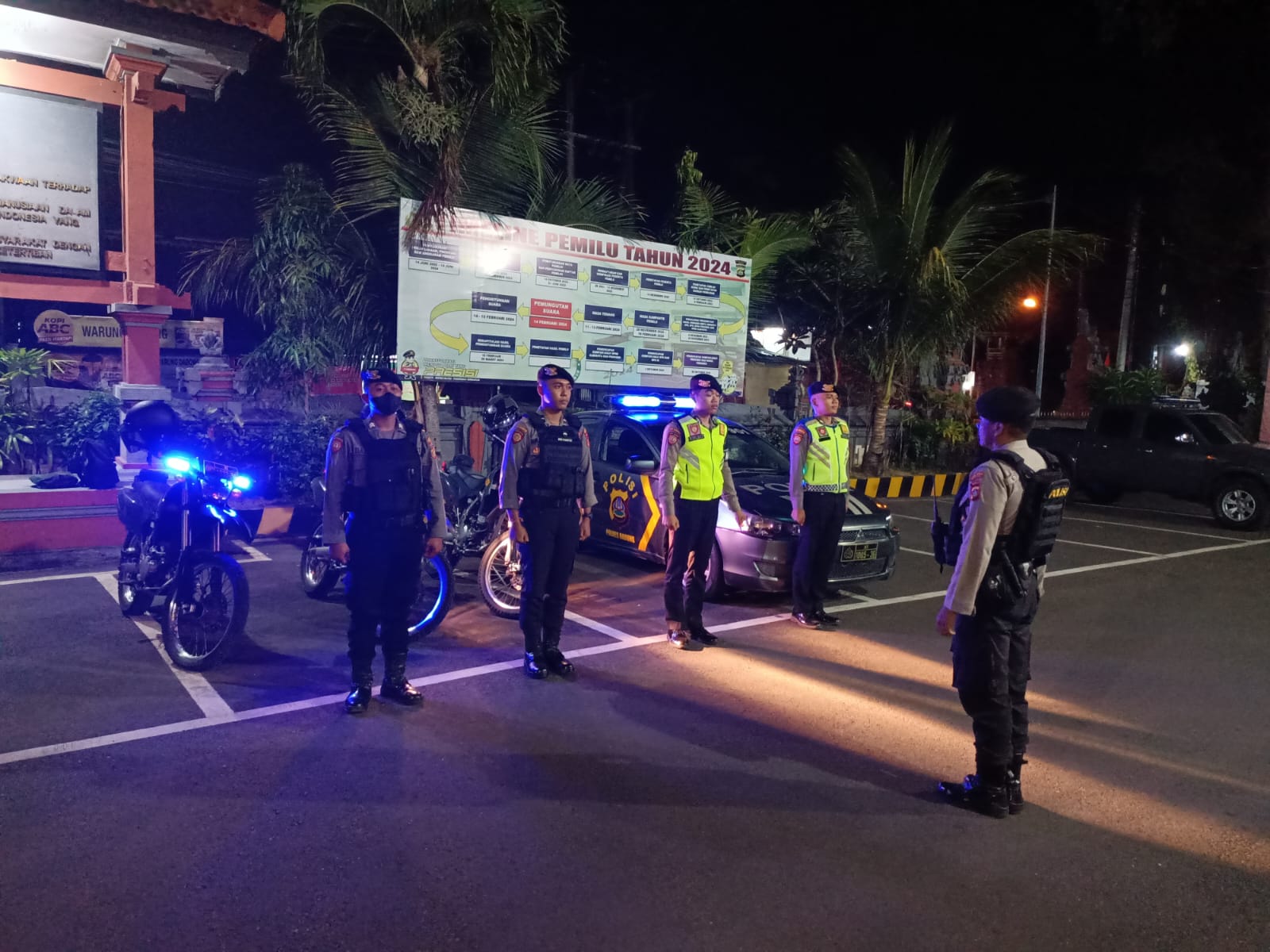 Kegiatan patroli malam dilaksanakan oleh Unit Raimas yang dipimpin oleh Aiptu I Wayan Sudiarta, S.Sos. dbersama Briptu I Made Darma Putra dan. Bripda I Gede Wahyu Juniarta.