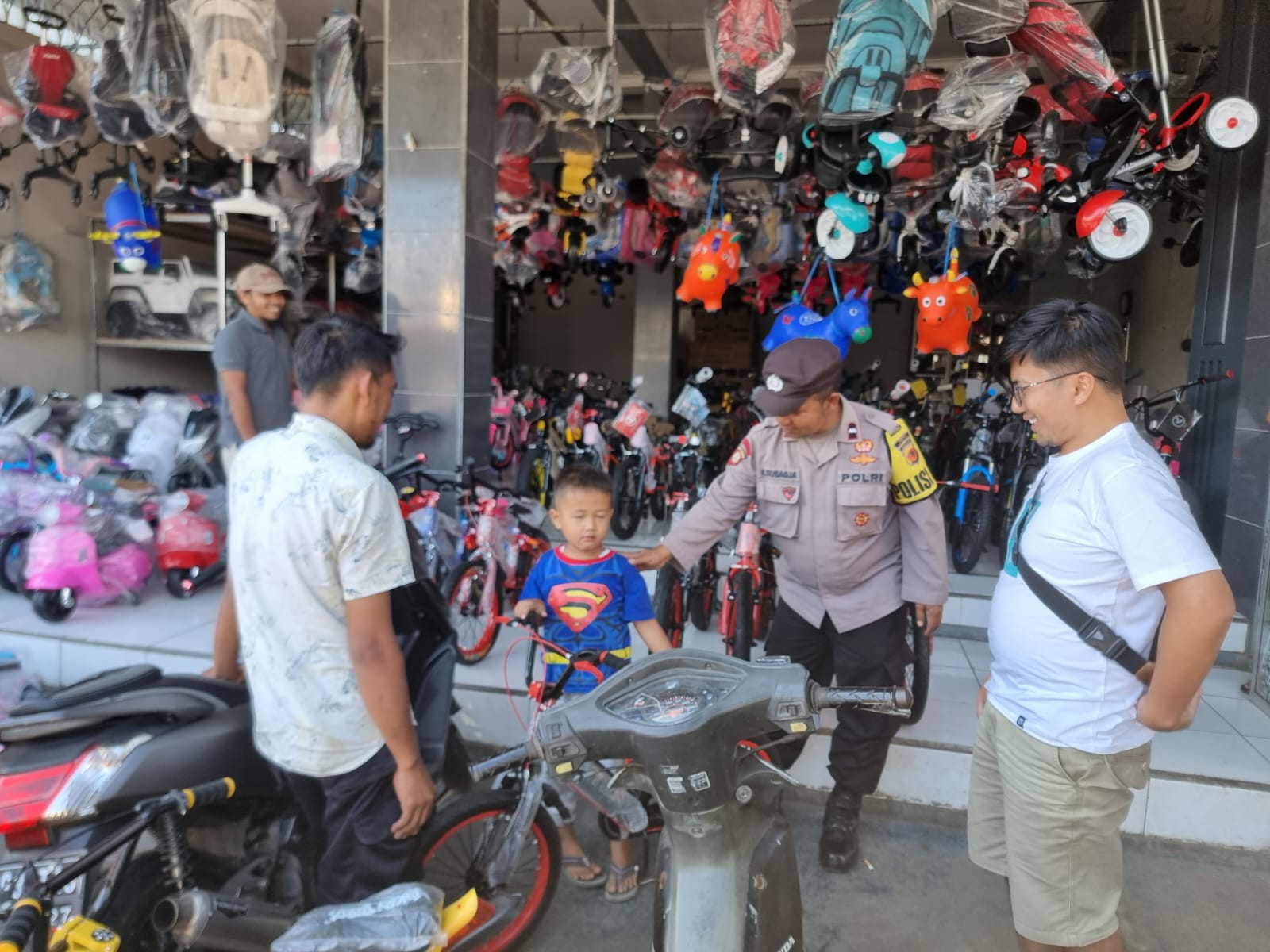 Majalengka – Bentuk upaya menjalin komunikasi dengan masyarakat, Ps. Panit Samapta l Polsek Cikijing Polres Majalengka Polda Jabar Aipda Eman Subagja melakukan patroli diseputaran Pasar Cikijing dan menyambangi salah satu Toko Sepeda guna menyampaikan himbauan Kamtibmas kepada pemilik toko maupun kepada pengunjung. Senin, (24/07/2023).