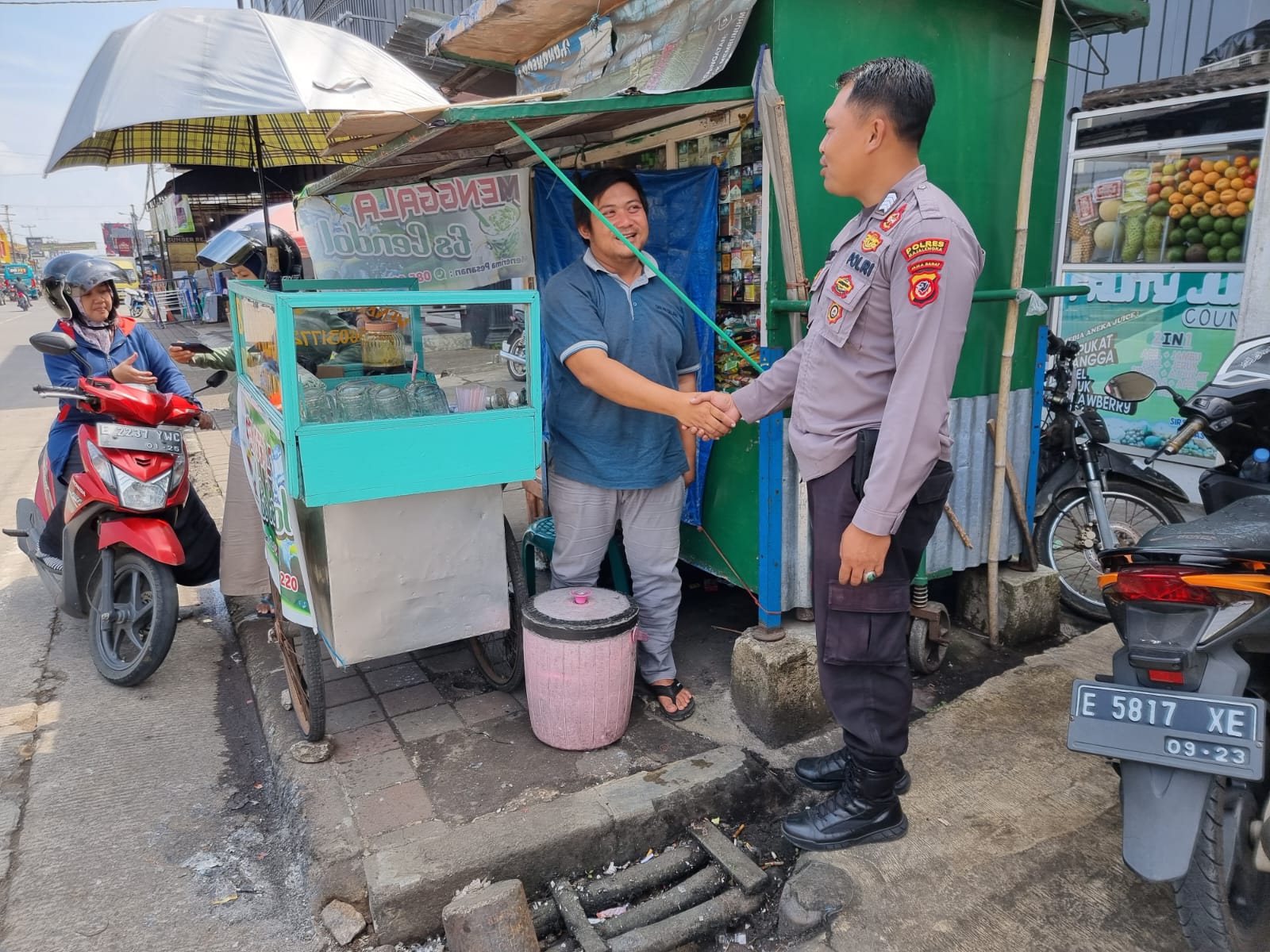 Majalengka – Guna membangun kemitraan antara anggota Polri dengan masyarakat demi terciptanya situasi kamtibmas yang aman dan kondusif, Bhabinkamtibmas Polsek Cikijing Polres Majalengka Polda Jabar Bripka Dede Arif menyambangi pedagang Es Cendol di pinggir jalan tepatnya di sebrang pasar Desa Cikijing. Minggu (09/07/2023).