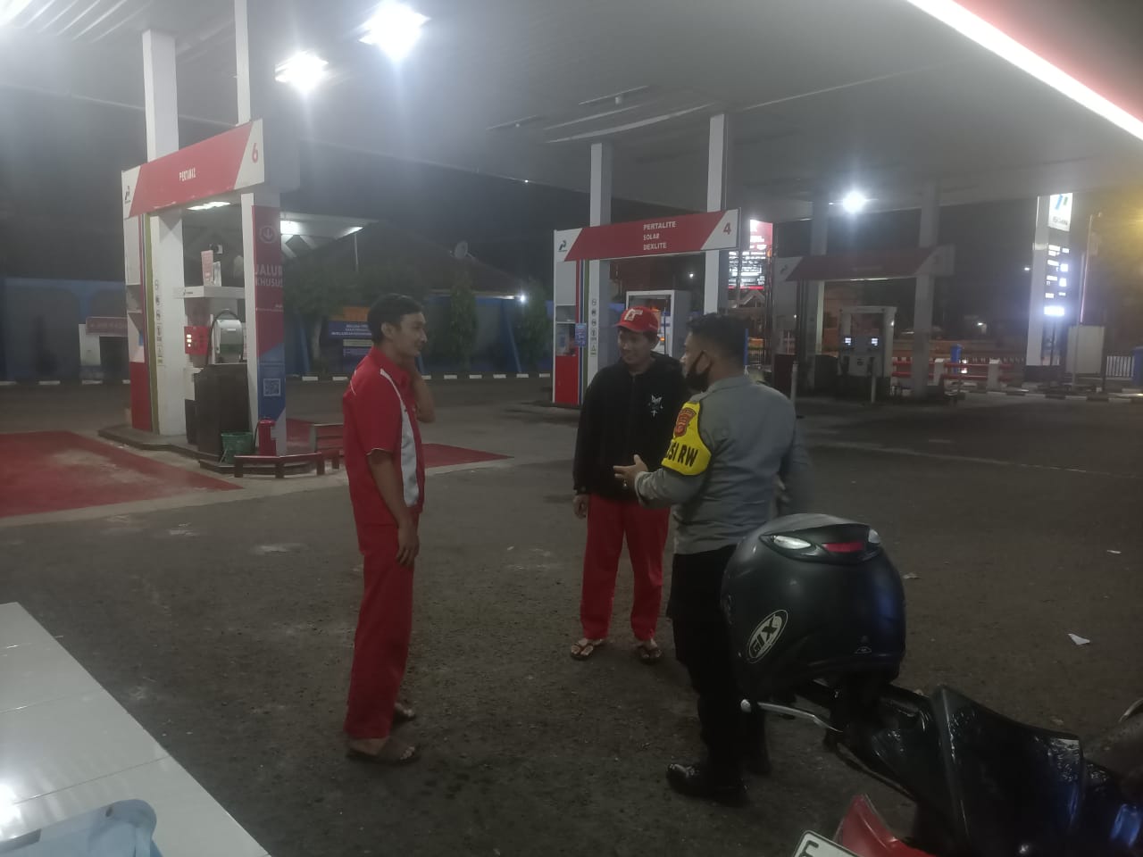 Majalengka, Polisi RW Polsek Majalengka Kota, Bripka Nanang Suhenda, menyambangi petugas SPBU di wilayah Kecamatan Majalengka, Kabupaten Majalengka. Dalam kunjungan tersebut, Bripka Nanang mengimbau petugas SPBU agar aktif berperan dalam menjaga kondusifitas keamanan dan ketertiban masyarakat (kamtibmas) di lingkungan sekitar. Pada Kamis (25/07/2024) Dini hari.