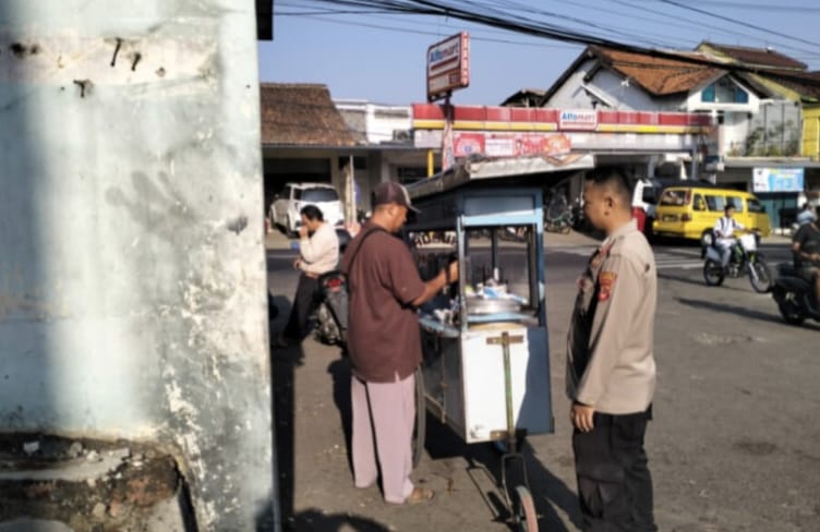 Majalengka,- Bripka Ridwan dari Bhabinkamtibmas Polsek Maja, Polres Majalengka, Polda Jabar, melaksanakan patroli dan sambang dialogis kepada pedagang keliling di wilayah Kecamatan Maja, Kabupaten Majalengka. Pada Kamis (18/04/2024).