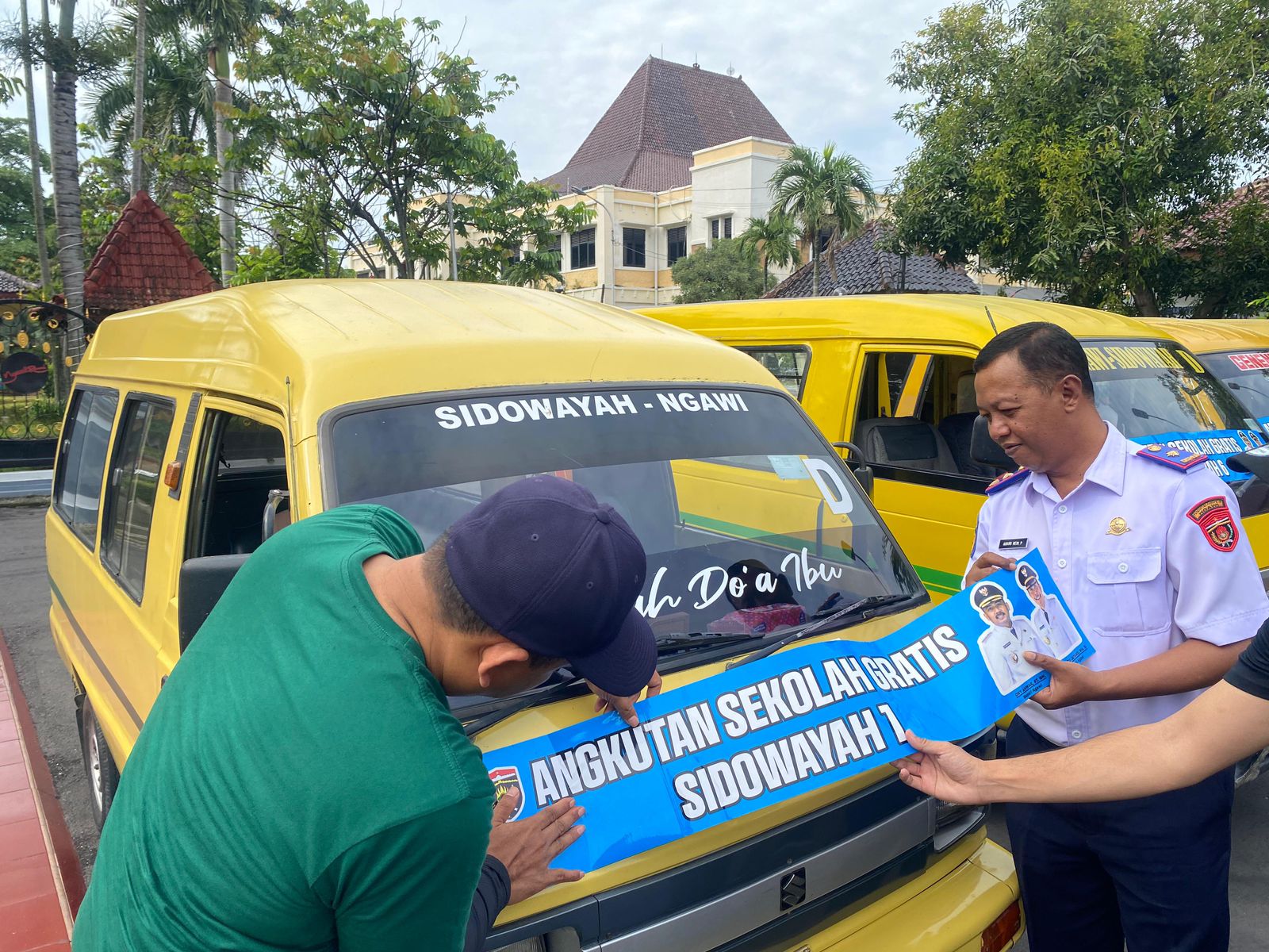 Pengoptimalan angkutan umum bagi seluruh pelajar di Kota Ramah, yang bertempat di halaman Pendopo Wedya Graha, Pemkab Ngawi, ini ditandai dengan penempelan stiker angkutan gratis, oleh Bupati Ngawi, ke beberapa angkutan umum.