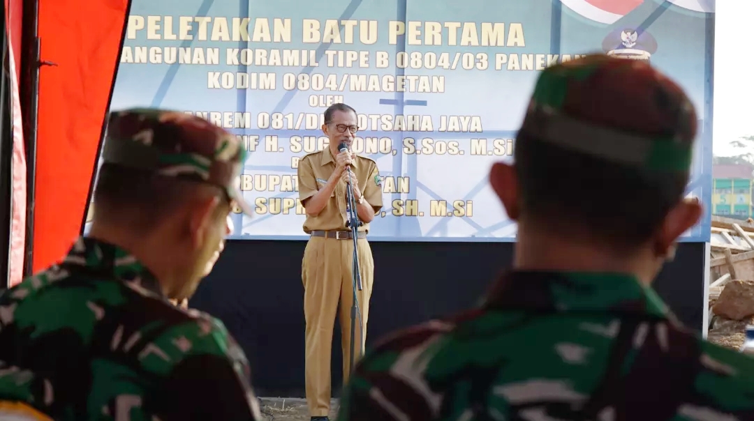 Untuk diketahui, acara peletakkan batu pertama pembangunan kantor baru Koramil 0804/03 Panekan dilakukan oleh Danrem 081/DSJ, Kolonel Inf H. Sugiyono dan dihadiri oleh jajaran Forkopimda di Kabupaten Magetan.