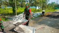 Anggota Koramil Karangjati Karya Bhakti Bersama Warga Laksanakan Pengecoran Jalan