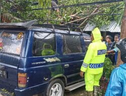 Polsek Ngawi Sigap Bantu Mobil Warga Tertimpa Pohon Tumbang