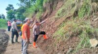 Polisi bersama TNI dan Warga Bersihkan Longsor Jalur Wisata Telaga Ngebel di Ponorogo Kembali Normal