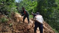 Gotong Royong Bersama Babinsa, Warga Desa Murung B Bersihkan Material Longsor