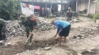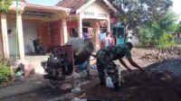 Babinsa Koramil 0805/10 Sine Bersama Warga Gotong Royong Bangun Jalan Paving