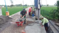 Upaya Menjaga Fasilitas Umum, Babinsa Bantu Perbaikan Jalan