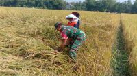 Dukung Ketahanan Pangan, Babinsa Koramil Kwadungan Bantu Petani Panen Padi