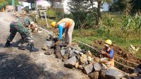 Manunggal Dengan Rakyat,Babinsa Koramil Kendal Bantu Warga Bangun Talud
