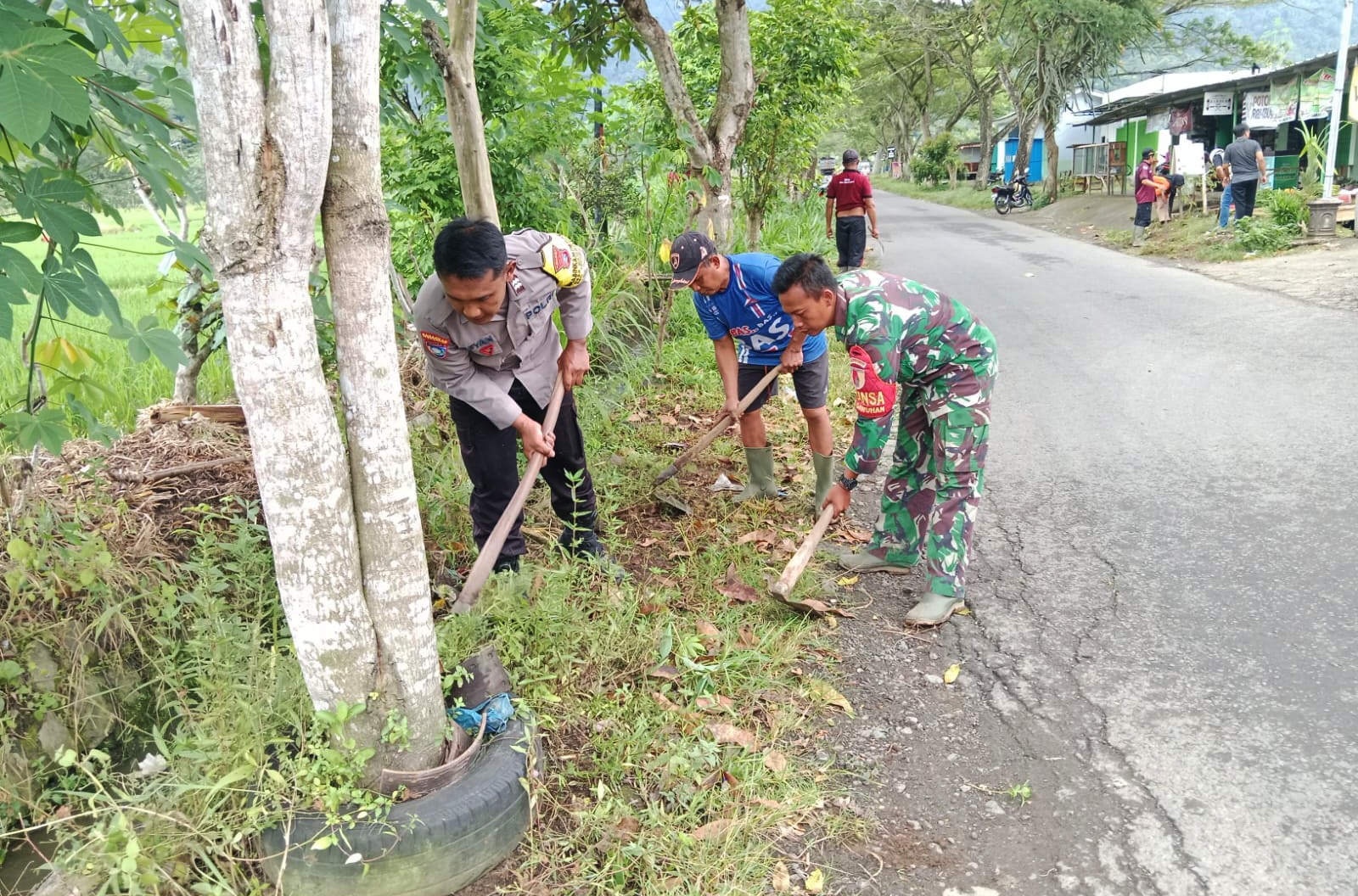 Gotong Royong di Pagi Berkabut: TNI-Polri dan Warga Dawuhan Bersatu Menjaga Lingkungan