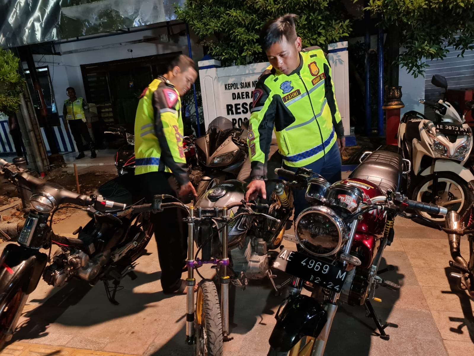 Dalam giat tersebut berhasil diamankan sebanyak 20 (dua puluh) kendaraan roda dua yang akan digunakan aksi balap liar dan berknalpot brong bersama pemiliknya.