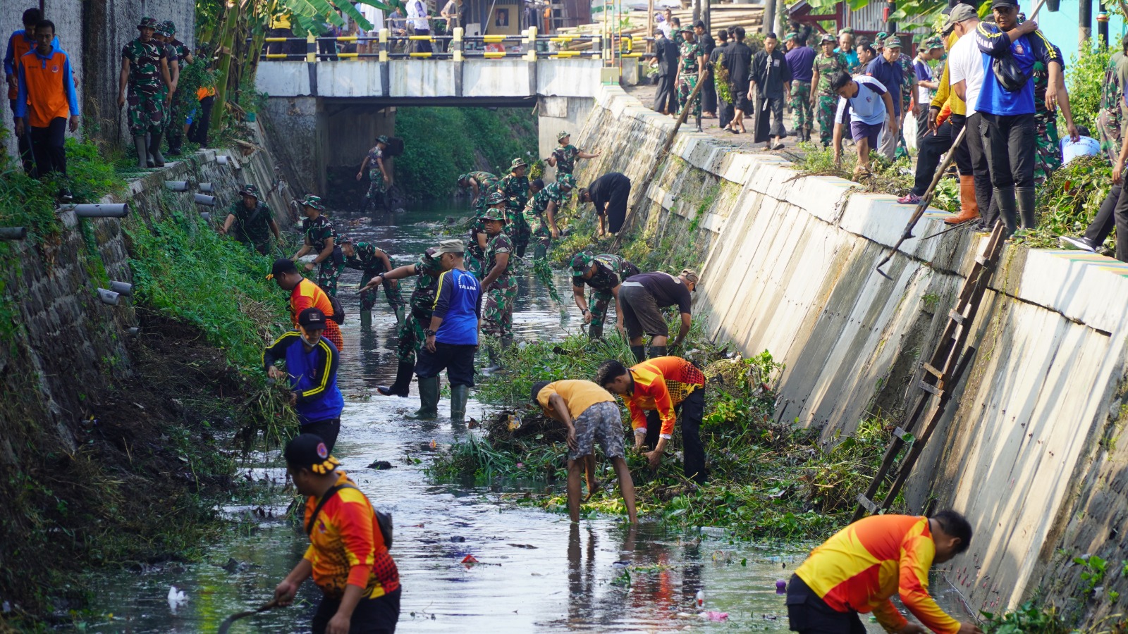 Cegah Banjir, Prajurit Korem 081/DSJ Bersihkan Kali Maling di Kota Madiun