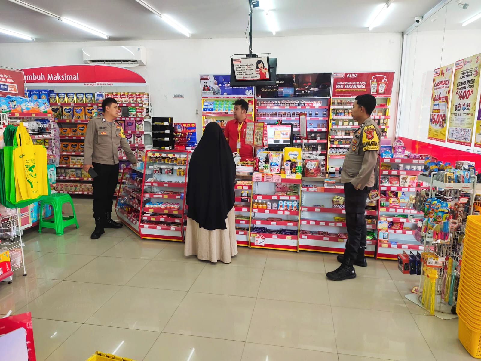 “Kami melaksanakan patroli dan menyambangi karyawan minimarket Alfamart untuk memberikan imbauan Kamtibmas, agar para karyawan tetap mengaktifkan kamera pengawas atau CCTV.” ujar Bripka Harry.