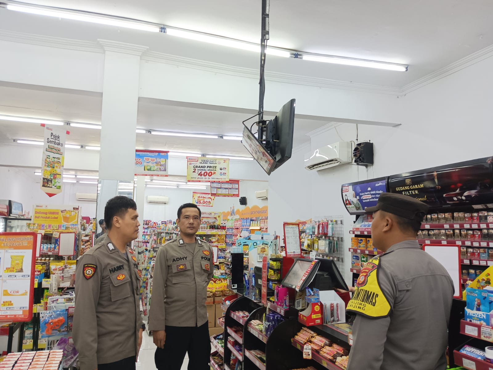 “Kami melaksanakan patroli dan menyambangi karyawan minimarket Alfamart untuk memberikan himbauan Kamtibmas, agar para karyawan tetap mengaktifkan kamera pengawas atau CCTV.” ujar Bripka Harry.
