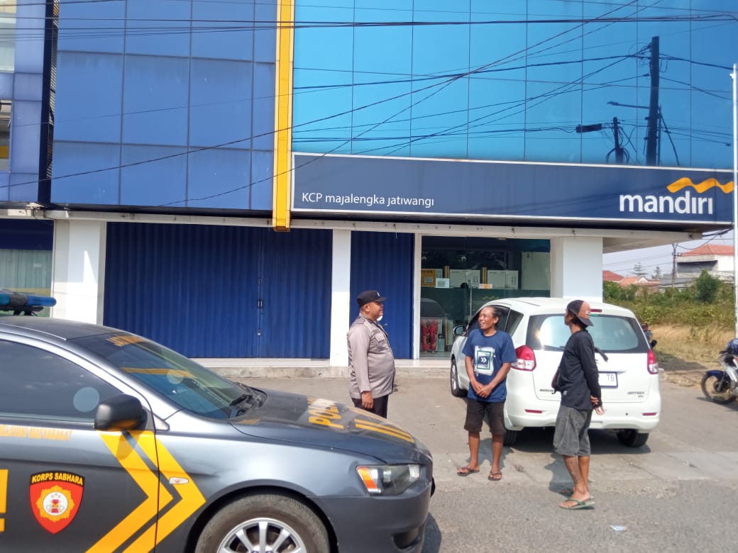 Majalengka – Jajaran Polsek Jatiwangi, Polres Majalengka, Polda Jabar melalui Bripka Dede Yaya Suhaya, SH bersama rekannya menggelar patroli siang untuk menciptakan rasa aman di Bank Mandiri Jatiwangi Kabupaten Majalengka, Senin (04/09/2023).