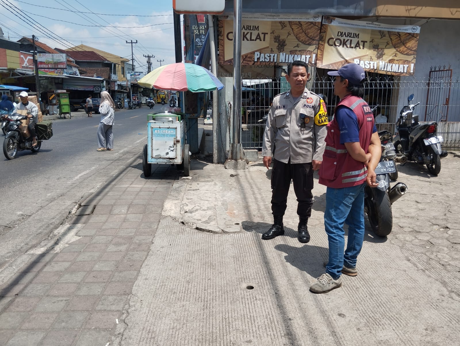 Dalam kesempatan tersebut, Aiptu Usin melakukan imbauan langsung kepada juru parkir saat melaksanakan patroli. Hal ini dilakukan untuk mengajak tukang parkir turut menjaga dan sadar akan keamanan serta ketertiban masyarakat.