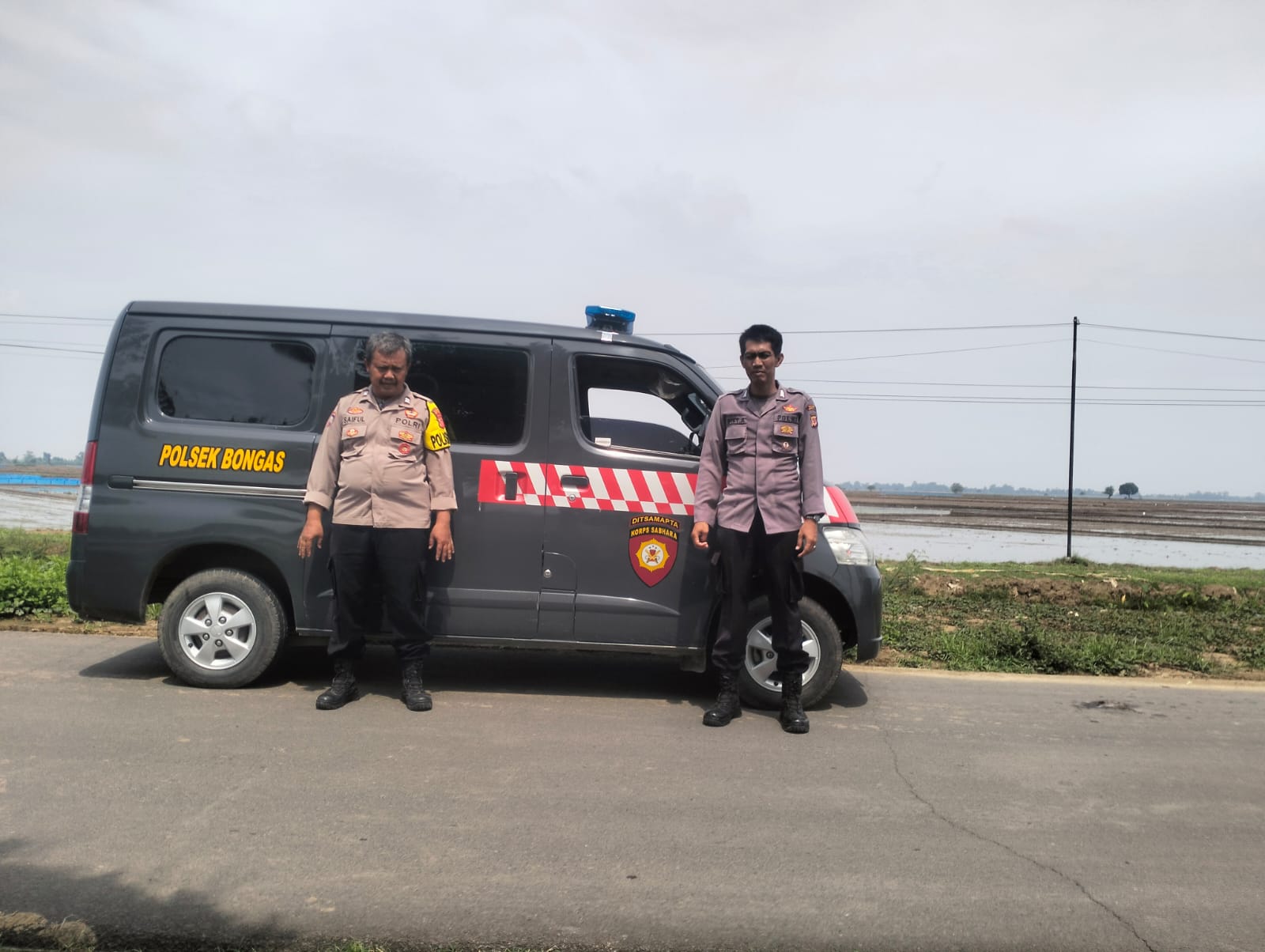 Dengan menggunakan kendaraan dinas, Dua Personil Polsek Bongas menyambangi daerah yang di anggap rawan aksi kejahatan di wilayah hukum Polsek Bongas, Kabupaten Indramayu.