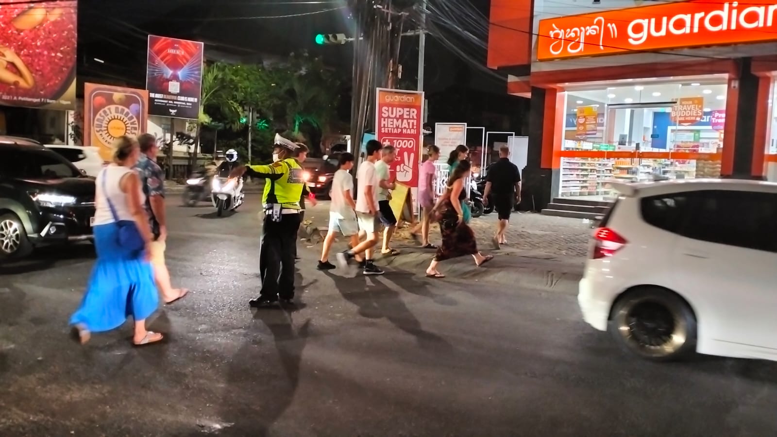 “Ada dua titik menjadi perhatian Kita melakukan pengaturan dan menyebrangkan pejalan kaki saat malam hari yakni simpang Lio dan Simpang Batu Belig Kelurahan Kerobokan Kelod,” Ujar Kanit Lantas Polsek Kuta Utara