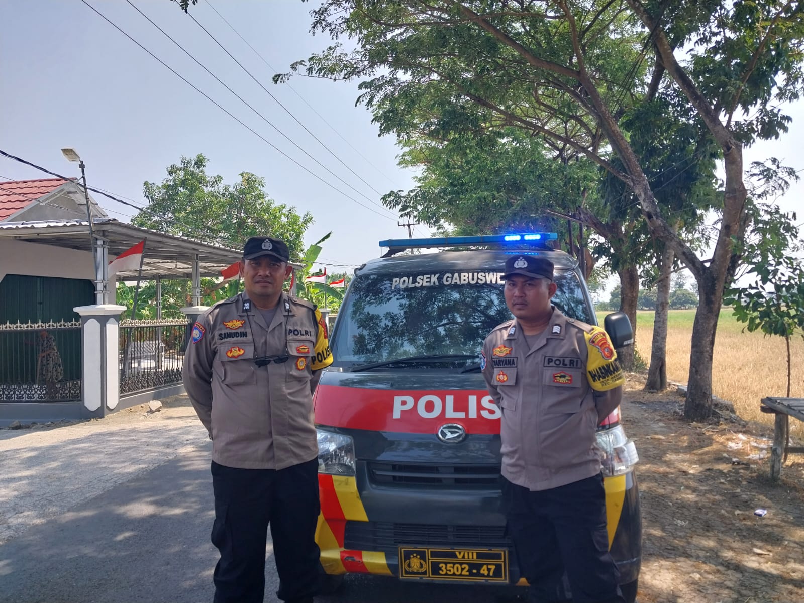 Indramayu, — Ciptakan situasi kondusif, Polsek Gabuswetan Jajaran Polres Indramayu melaksanakan patroli dan strong point di wilayah Hukum Polsek Gabuswetan, Minggu (20/8/2023).