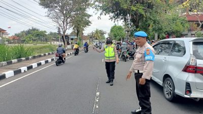 Dalam kegiatan tersebut terpantau personil polsek mengwi yang dikendalikan Kanit Samapta Iptu Dewa Ketut Suriyawan S.Sos., melaksanakan pengaturan lalulintas