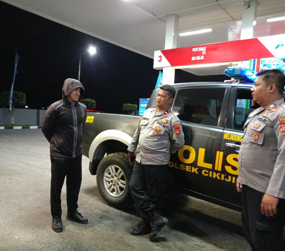 Majalengka – Personil Polsek Cikijing Polres Majalengka Polda Jabar, Ka SPKT l Aipda Asep Nugroho dan Brigadir Riki Gemi melakukan Pengamanan dan monitoring di SPBU Cikijing Kabupaten Majalengka, Minggu (03/09/2023) Dini Hari.