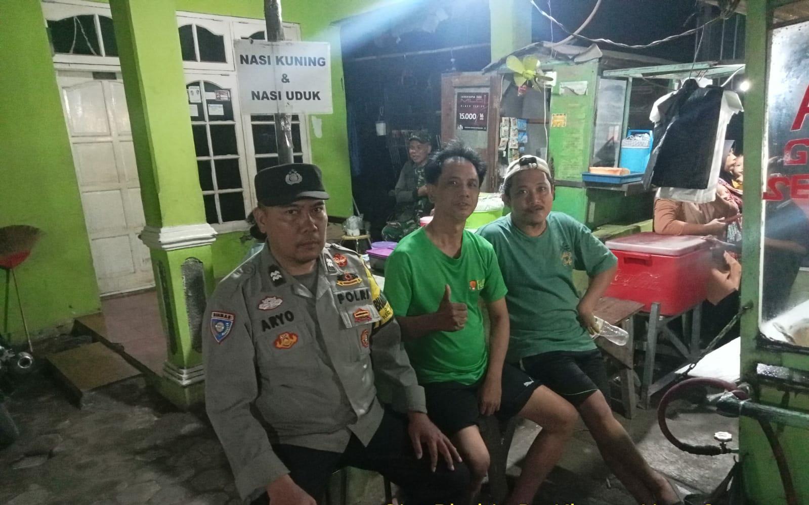 Bhabinkamtibmas Desa Klayan AIPTU Sunaryo , pantau siskamling di RW 07 villa intan desa klayan sekaligus menghimbau jaga kewaspadaan lingkungan jam rawan , Sabtu malam (22/06/2024).