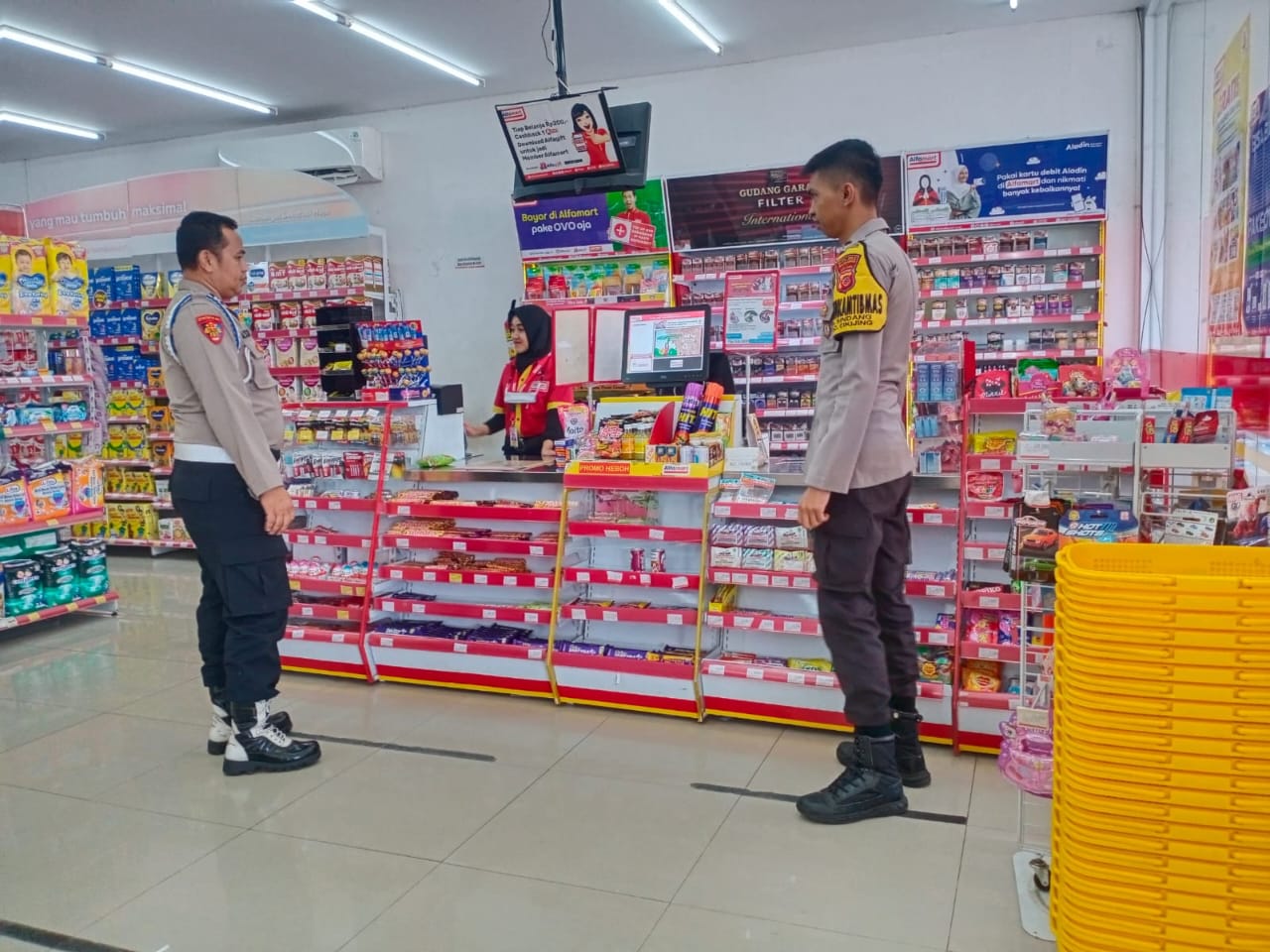 “Kami melaksanakan patroli dan menyambangi minimarket Alfamart ini bertujuan untuk memberikannya imbauan Kamtibmas kepada karyawan Alfamart maupun para pengunjung minimarket.” ujar Aiptu Memen.