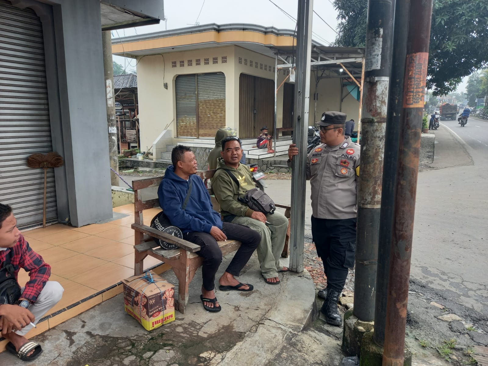 Majalengka-Bhabinkamtibmas melaksanakan silaturahmi dan sambang Warga/ Masyarakat Desa Salagedang, bersama warga melaksanakan Dialogis di jalan simpang tiga Desa Salagedang, Selasa (13/6/2023).