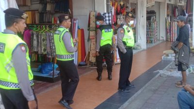 Untuk memantau situasi kamtibmas agar tetap kondusif Personil Satuan Samapta Polres Bangli dengan rutin melaksanakan Patroli jalan kaki di pasar Kidul Bangli.