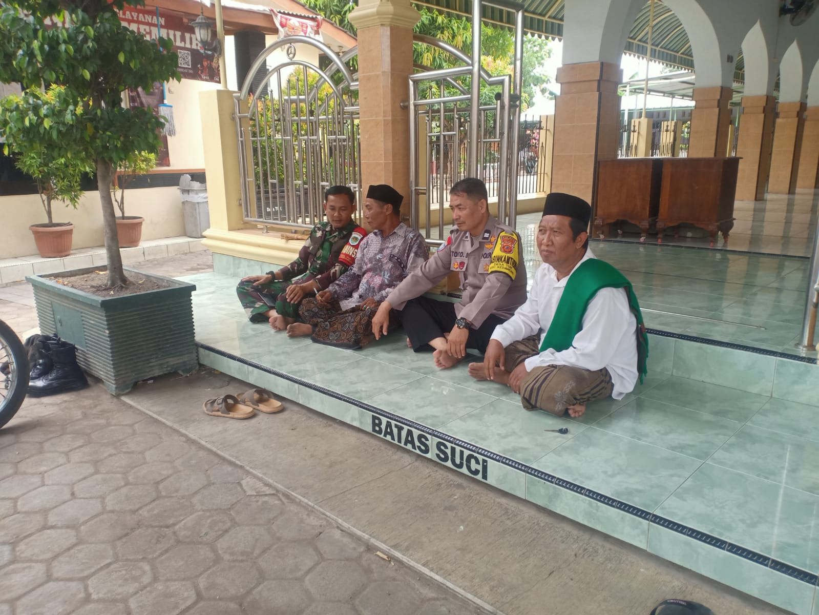 Bhabinkamtibmas Desa Tuk Aiptu Toto Suparta bersama Babinsa silaturahmi Kamtibmas Tokoh agama dan warga blok pembangunan barat RW 02 Desa Tuk Kec.Kedawung Cirebon Kota pererat silaturahmi, bangun cooling system jelang Pilkada, Minggu (03/11/2024).