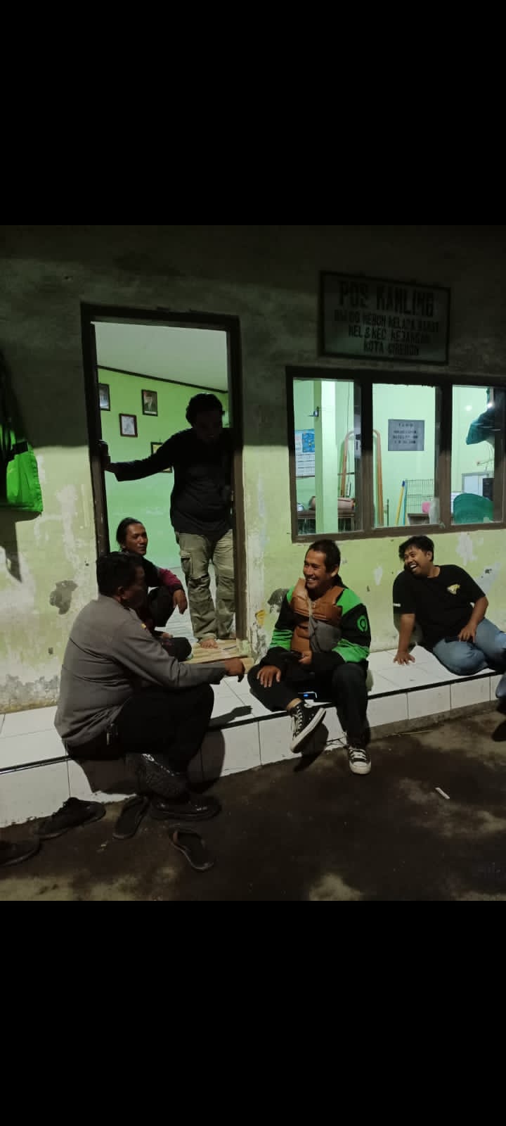 Jajaran Bhabinkamtibmas Polsek Utbar Polres Cirebon Kota Polda Jabar melaksanakan sambang patroli wilayah binaan, Seperti yang di lakukan Bripka Pendi Bhabinkamtbmas kelurahan kejaksan bersama Babinsa kepada warga saat jaga malam di poskamling RW 08 Kebon kelapa kelurahan kejaksaan, Selasa malam (05/11/2024).