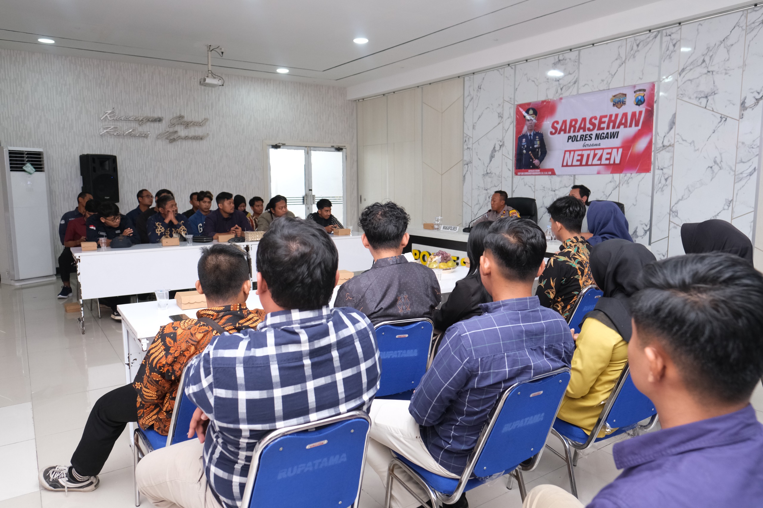 Salah satu kegiatan cooling system ini adalah melaksanakan sarasehan bersama Netizen, di ruang guyub Polres Ngawi yang diikuti sekira lima puluh orang.