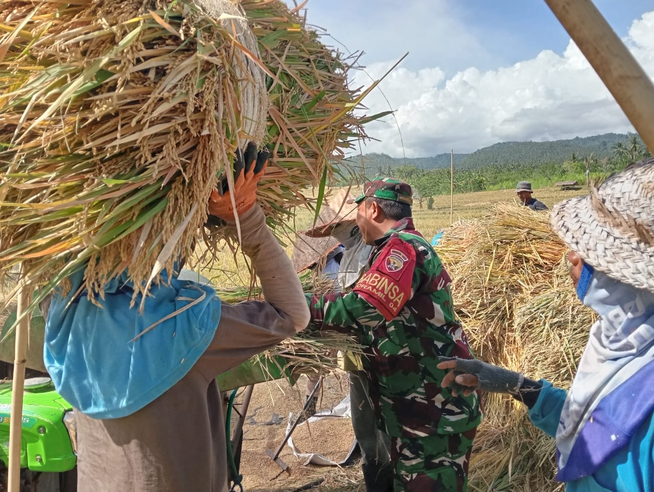 Senin, 7 April 2025 Babinsa Desa Gumbrih, Koramil 1617-04/Pekutatan Kodim 1617/Jembrana Serda Made Suwirta mendampingi kegiatan panen padi (serapan Gabah) milik Bapak Nyoman Desi dengan Luas sawah 70 are, bertempat di wilayah Subak Pangkung Srangsang, Br Serong, Desa Gumbrih, Kec. Pekutatan, Kab. Jembrana.