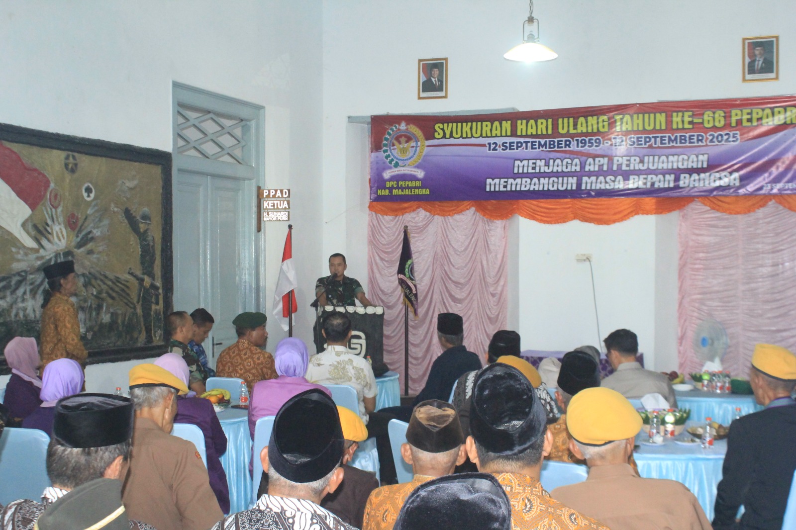 Majalengka – Komandan Kodim (Dandim) 0617/Majalengka, Letkol Inf Fahmi Guruh Rahayu, menghadiri acara Syukuran Hari Ulang Tahun (HUT) ke-66 Persatuan Purnawirawan dan Warakawuri TNI-Polri (Pepabri) tingkat Kabupaten Majalengka, Selasa (23/9/2025). Kegiatan berlangsung di Gedung Juang Majalengka, Jalan KH Abdul Halim, Kelurahan Majalengka Kulon, Kabupaten Majalengka.