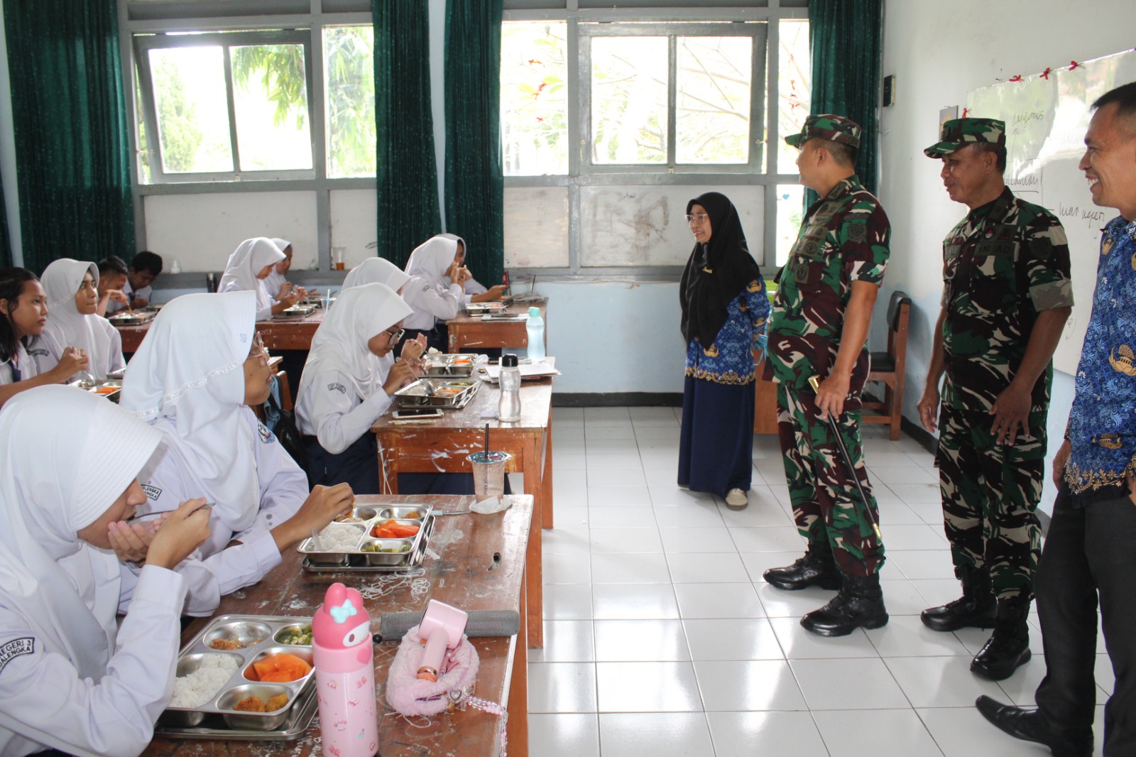 Majalengka || Dandim 0617/Majalengka Letkol Inf Dudy Pilianto melaksanakan kegiatan monitoring launching pelaksanaan program makan bergizi untuk anak sekolah. Sebanyak 6.303 paket makanan didistribusikan ke dua puluh tujuh sekolah di wilayah Kecamatan/Kabupaten Majalengka.