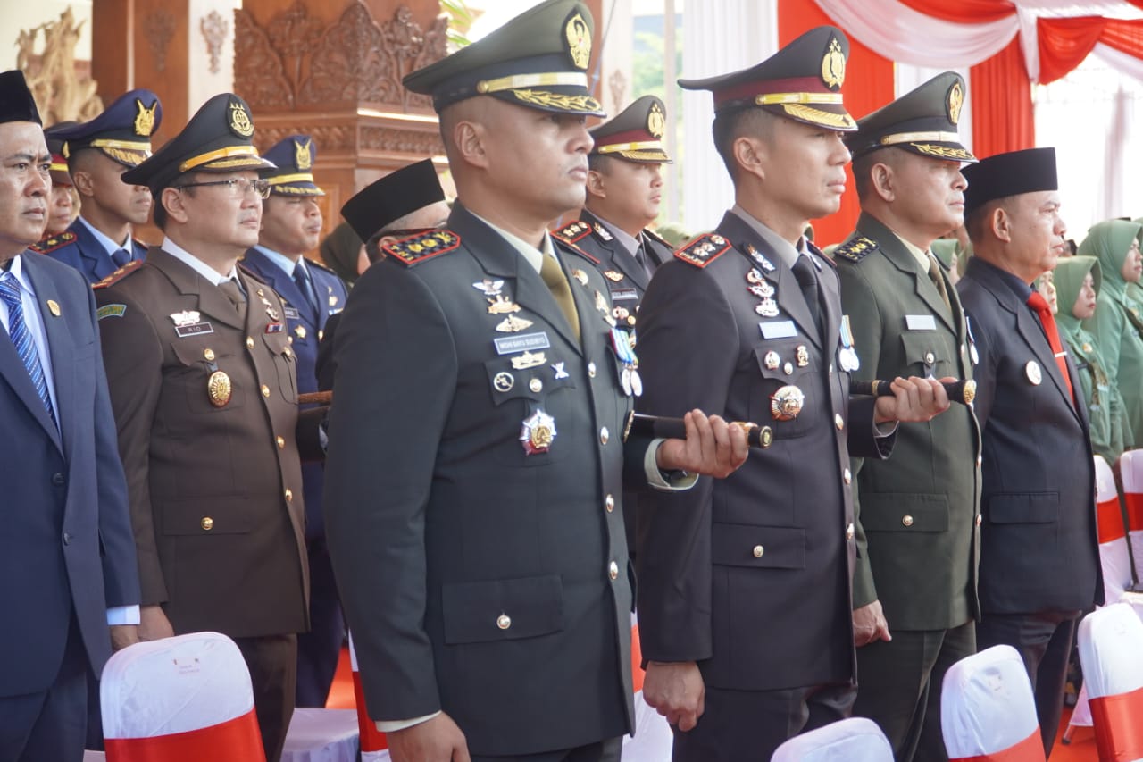 Suasana upacara berlangsung khidmat dan penuh makna. Barisan pasukan TNI tampil gagah dan berwibawa, diiringi dengan pengibaran bendera Merah Putih yang membuat seluruh peserta upacara larut dalam suasana haru dan bangga. Antusiasme masyarakat yang hadir di sekitar lokasi menambah semarak peringatan, mencerminkan kecintaan rakyat terhadap TNI yang senantiasa menjaga keamanan dan kedaulatan bangsa.